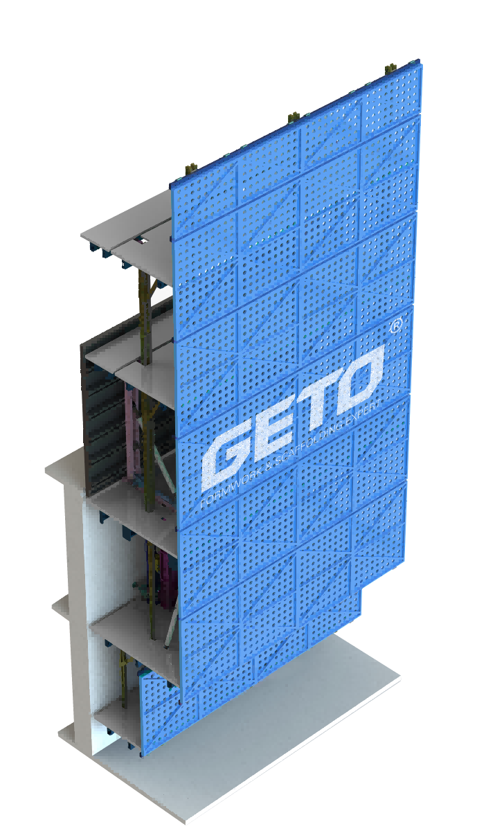La cartera de productos de la empresa incluye aluminio, acero, madera con estructura de acero, sistemas de trepado (pantallas de protección, encofrados trepadores, plataformas autotrepantes, etc.), encofrados de hormigón visto y andamios y encofrados para infraestructuras como puentes, túneles, corredores de servicios públicos, metros, aeropuertos y proyectos de conservación del agua. Al promover activamente la sustitución de la madera por aluminio y acero, GETO posibilita métodos de construcción más seguros, eficientes y con bajas emisiones de carbono, apoyando así la transformación ecológica del sector.