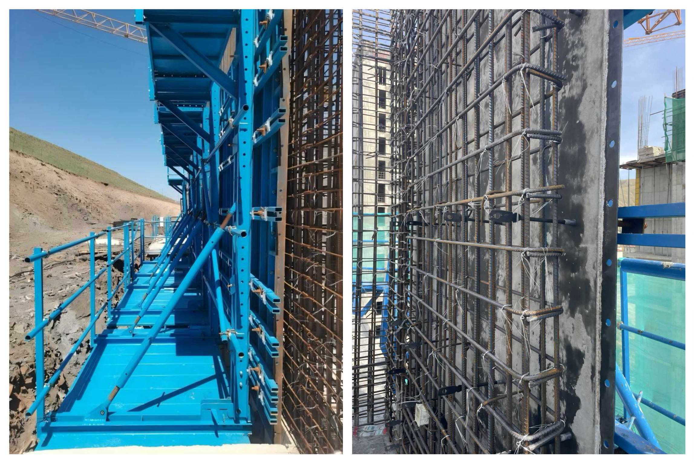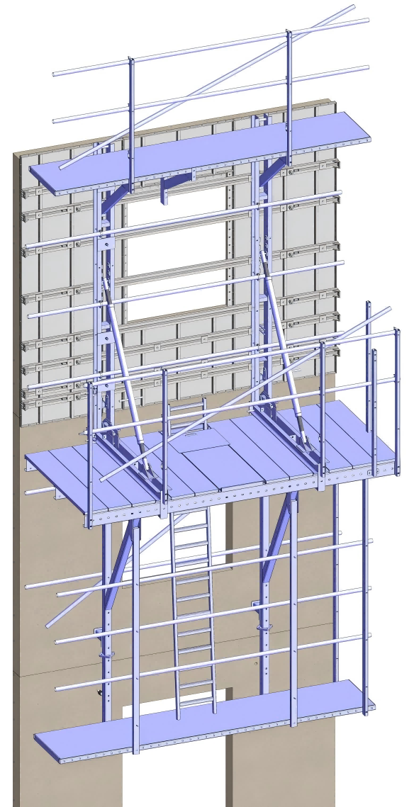 El sistema de encofrado trepante elevable es una solución de encofrado externo que se eleva mediante grúa y permite el ascenso simultáneo del encofrado y la plataforma de trabajo. Este sistema simplifica la operación, acorta los ciclos de construcción y reduce la intensidad del trabajo. Es aplicable a la construcción de estructuras de hormigón como muros exteriores de edificios, huecos de ascensores, pilas de puentes, anclajes, estructuras de contención de centrales nucleares, presas y muros de contención de hormigón, proporcionando encofrado, soporte y una plataforma de trabajo para el vertido vertical de hormigón.