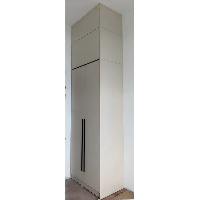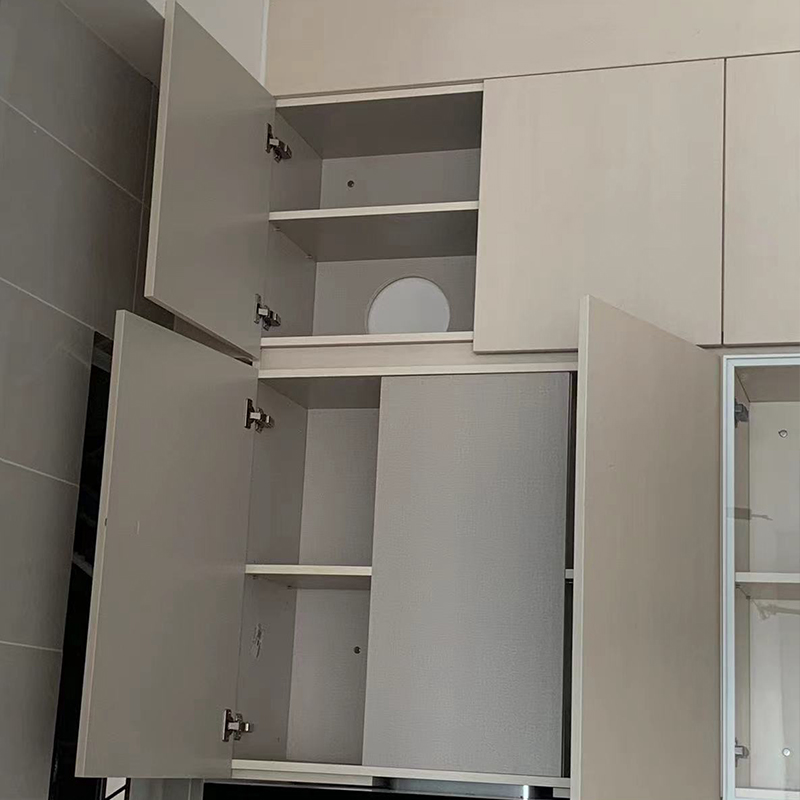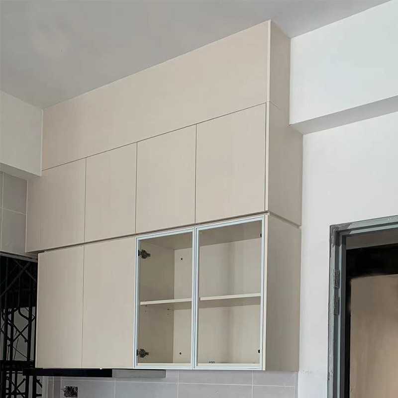 El paquete de gabinetes incluye gabinetes superiores e inferiores de cocina, guardarropas para dormitorios, paneles de acabado, puertas de vidrio y herrajes completos, con interfaces reservadas para coordinar la instalación de electrodomésticos como campanas extractoras, estufas, fregaderos y grifos.